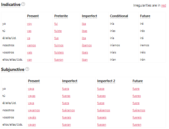 Spanish Verbs In this section you will find an overview of each Spanish tense For a comprehensive overview, click the link below for the verb tense you would like to learn more about Present Preterite Imperfect Future Conditional Present Perfect.