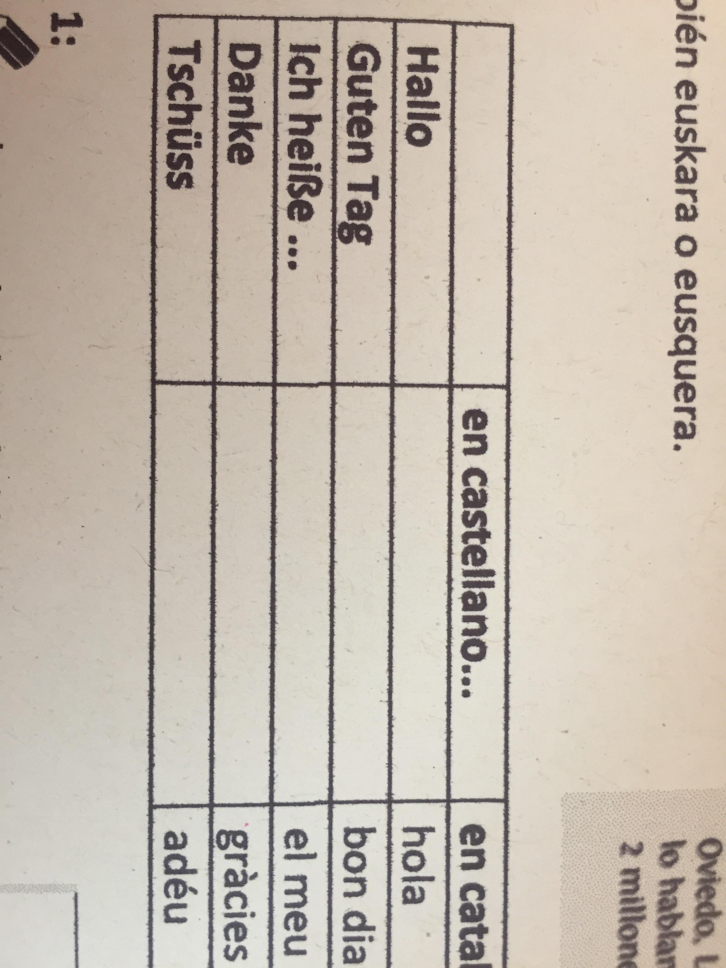 Telefonieren auf Spanisch – Ein Taxi bestellen Für junge Leser mag es überraschend sein, dass Menschen wie ich auch heute noch Taxis per Telefon und nicht per App bestellen Bei der Gelegenheit drei Tipps zum Thema Taxifahren. Hallo zusammen ich habe ein problem und zwar muss ich einen Text schreiben wo ich mich vorstelle In diesem Text muss man mein Name mein Alter mein Wohnort meine Nationalität meine hobbys meine familie und meine fächer in der schule drin stehen. Begrüßen und vorstellen 1 G O O D M O R N I N G Deutsch Englisch Französisch Italienisch Spanisch Schiff ship Palme palmtree palmier palma palma Ring ring Rose rose rose rosa rosa Polnisch Tschechisch Finnisch Slowenisch Ihre Sprache _____ palma palma_____ rengas ring_____.