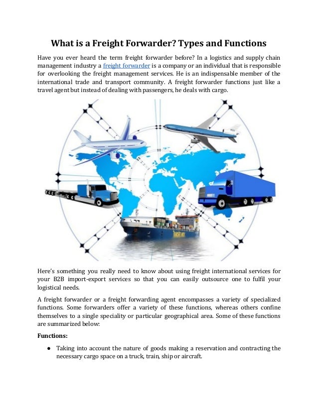 A freight forwarder is an asset to almost any company that requires international or national transportation of cargo A reliable freight forwarding service can save money, time and potential delays while providing reliable transportation of cargo at competitive rates. What a Freight Forwarder Can Offer Freight forwarders typically function as intermediaries between the businesses that hire them, and the various transportation services responsible for getting their products to overseas customers, including carriers, handlers and customs officials. A freight forwarding company handles the shipment of goods on your behalf They don’t ship the cargo themselves Such companies are associated with carriers that offer shipping through different.