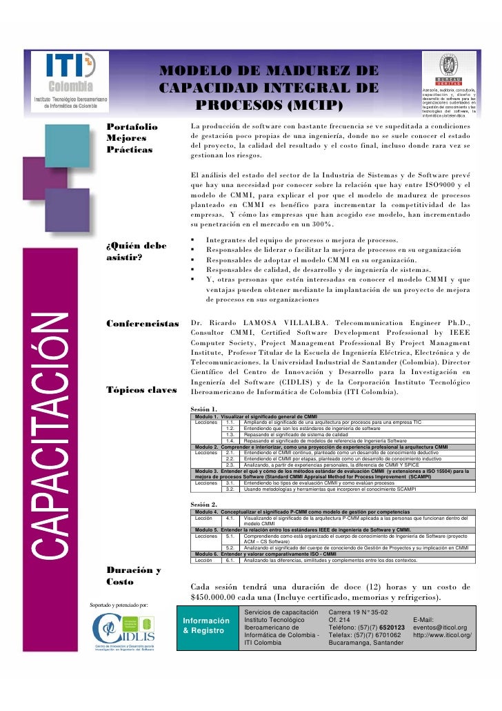 Capability Maturity Model Integration (CMMI) CMMI is similar to ASPICE in that it helps businesses optimize their processes, and provides a framework for determining the capability maturity of an organization (and the processes it uses) The aim of any CMMI program is to earn "appraisal", basically a certification of the maturity level (from 15). CMMI Y SPICE Los modelos de calidad son sistemas basados en estudios experimentales de mejores prácticas que ayudan a una organización a implantar un Sistema de aseguramiento de la calidad Los modelos de calidad se dividen en modelos de referencia, que indican cuáles son las. This 3 day Introduction to CMMI includes the CMMI for Services (CMMISVC) as well as the CMMI for Development (CMMIDEV) model This training is for all staff, trainers and consultants who will work in services improvement Quality managers and staff responsible for service management will also benefit from this training.