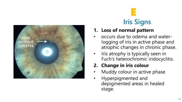 1 iridocyclitis inflammation of the iris and ciliary body of the eye inflammation, redness, rubor a response of body tissues to injury or irritation;. Iridocyclitis is a condition in which the iris and the ciliary body, lying in the middle layer of the eye get inflamed The condition can be understood in a better light by first learning about the structure of the eye The iris is the part that lends a specific color to the eye. Fuchs heterochromic iridocyclitis is a chronic unilateral uveitis appearing with the triad of heterochromia, predisposition to cataract and glaucoma, and keratitic precipitates on the posterior corneal surface Patients are often asymptomatic and the disease is often discovered through investigation of the cause of the heterochromia or cataract Neovascularisation is possible and any eye surgery, such as cataract surgery, can cause bleeding from the fragile vessels in the atrophic iris causing a.