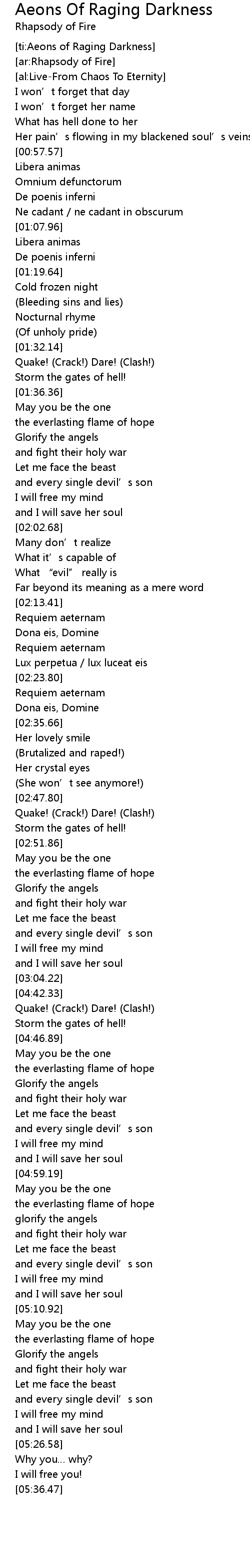 Aeons Of Raging Darkness Lyrics Follow Lyrics