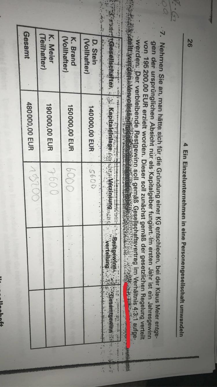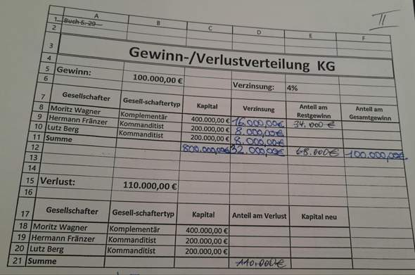 Restgewinn berechnen Meine Frage Die Rolf Fein OHG errichtet eine Produktionsstätte in Kassel Am 0101 wird die bisherige OHG in eine KG umgewandelt Komplementäre Rolf Fein EUR Hans Gruber EUR Kommanditisten Karl Fein EUR Anton Lang EUR, wobei er nur 75% einzahlt. Der Restgewinn soll im Verhältnis von 41 verteilt werden Der Komplementär thesauriert seinen Gewinnanteil, der ihm nach Tätigkeitsvergütung und Privatentnahme zusteht Der Kommanditist lässt sich seinen Gewinnanteil auszahlen Berechnen Sie die Höhen des Eigenkapitals am Ende sowie den Beitrag jeden. Als die beiden Komplementäre steht ihm auch weniger Restgewinn zu Außerdem ist eine Bevorzugung der Komplementäre aus dem Grund angemessen, dass sie im Haftungsfall auch mit ihrem Privatvermögen haften müssen und somit ein höheres Risiko tragen.