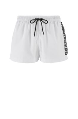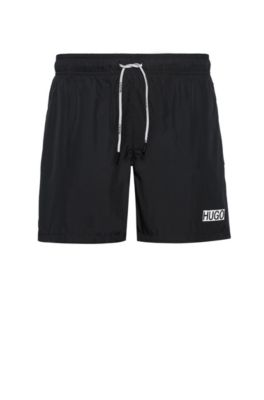 Visit our online shop in the USA Shop US Change Country See more Find in store PRODUCT DETAILS Product Description Essential swim shorts by HUGO, designed in quickdrying fabric with breathable mesh lining. Quickdrying swim shorts by BOSS, crafted in recycled polyester as part of a continued commitment to reducing the environmental impact of fashion production These fully lined swim shorts feature a contrast logo and stripe at the left leg for statement style. Full elastic waistband with drawstring for an adjustable fit.