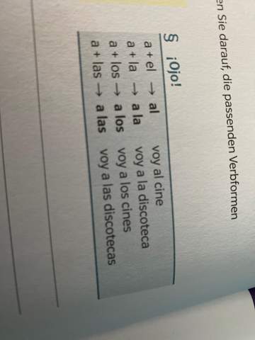 Anfragen beantworten wir gerne unter spanisch@alespanolde oder telefonisch unter 0 66 bzw 0171 (Astrid Rust mobil) AKTUELLE INFORMATION ZUM CORONOVIRUS Seit 15. Lernen Sie die Übersetzung für 'spanisch' in LEOs Español ⇔ Alemán Wörterbuch Mit Flexionstabellen der verschiedenen Fälle und Zeiten Aussprache und relevante Diskussionen Kostenloser Vokabeltrainer. One is A EL = AL and the other is DE EL = DEL See the summary chart below The contraction AL Whenever the preposition A is followed by the article EL, the two words are joined to form one new word (contraction) AL Incorrect Voy a el supermercado Correct Voy al supermercado More examples of sentences with AL El libro está traducido.