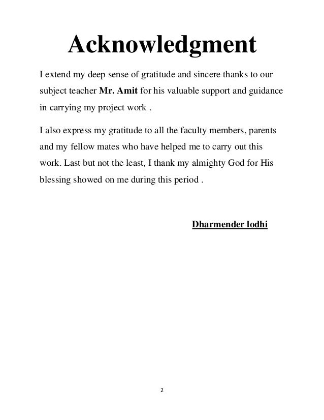 What Is The Acknowledgement For Cbse Class 12 Project Are We Suppose To Give Thanks To The Cbse Or Our Teacher Quora