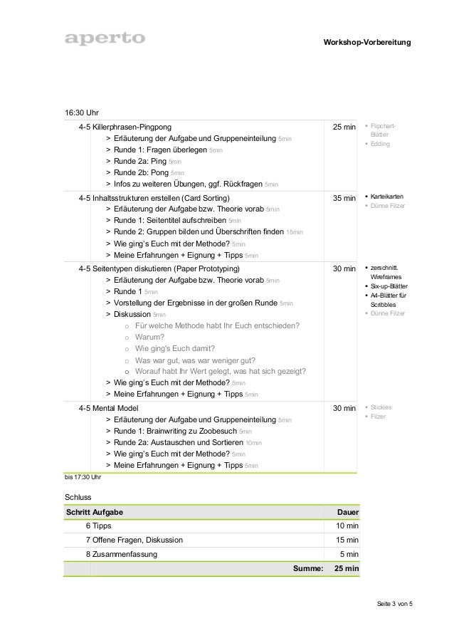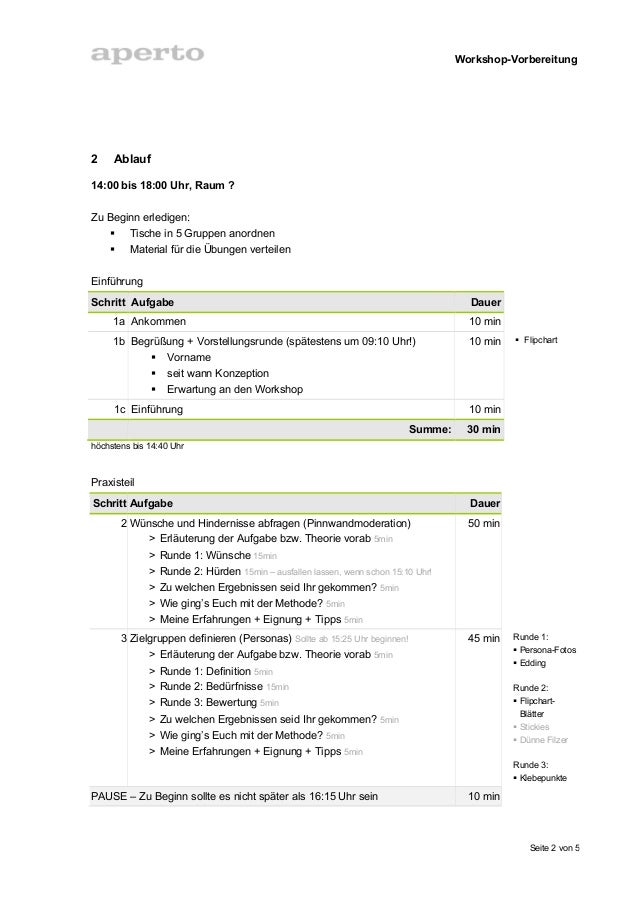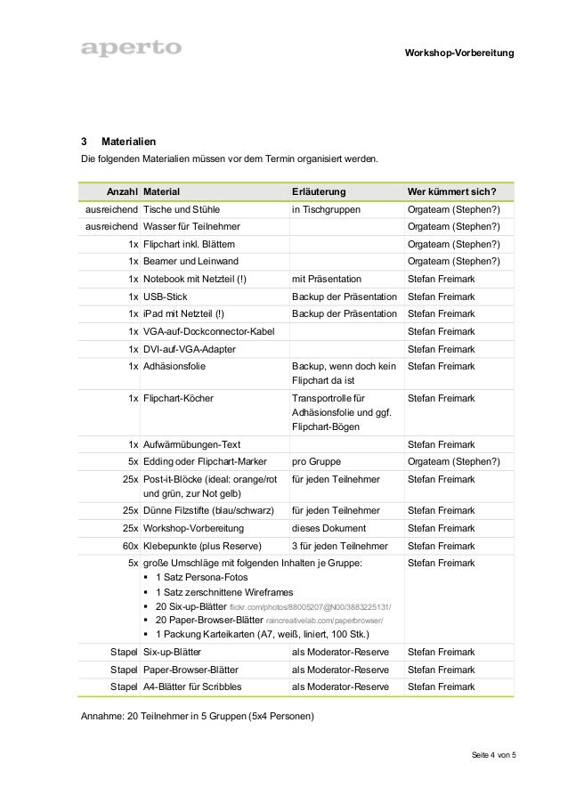 Vorbereitung Eines Workshops A Preparing A Workshop
