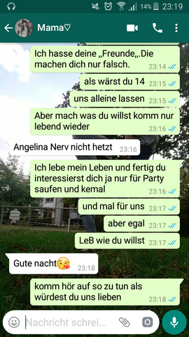 Dieser Test ist für alle, die es momentan schwer in ihrem Leben haben und sich Wege der Erleichterung suchen, die nicht gut für sie sind Selbst wenn du dich ritzt etc, weißt du mit Sicherheit, dass das keine Lösung ist und niemals sein wird. Mit meiner Schwiegermutter habe ich echt Glück gehabt passt super Mit meiner Mutter so gar nicht Wie ich damit umgehe?. Im Forum kannst du deine Probleme offen ansprechen und mit anderen diskutieren Wenn du einen Beitrag schreiben möchtest, musst du dich vorher registrieren oder einloggen.