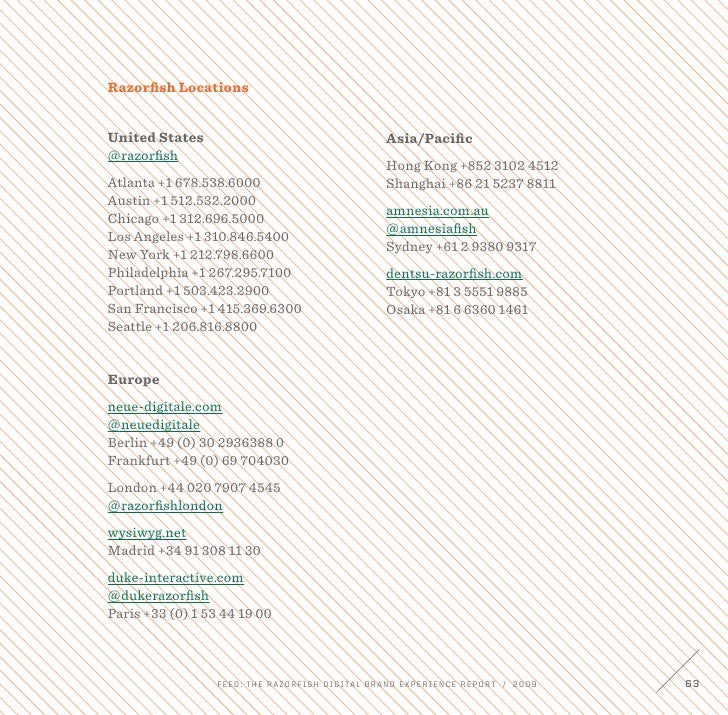 Razorfish Inc (formerly Avenue A Razorfish) is one of the world's largest 1 interactive agenciesRazorfish provides services including digital advertising and content creation, media buying, strategic counsel, analytics, technology and user experience 2 In May 07, Razorfish was bought by Microsoft as part of its acquisition of Razorfish's parent company aQuantive Inc, in a deal. There are almost 100 people here in Frankfurt, organized into two selfcontained Business Units run by the Kai’s (Kai Platschke runs Frankfurt East and Kai Greib runs Frankfurt North) Frankfurt is also the City that Andreas and Olaf call home – so I guess one could say it is the German headquarters. View Emily Frankfurt’s profile on LinkedIn, the world’s largest professional community Emily has 4 jobs listed on their profile See the complete profile on LinkedIn and discover Emily’s.