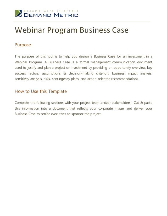 Webinar Program Business Case Template