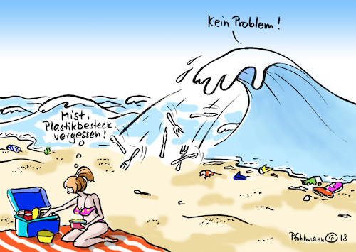 Karikatur Beschreiben Thema Umwelt Mull Plastik