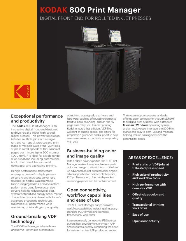 Kodak 800 Print Manager Datasheet