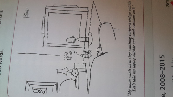 A great way to learn spoken English is watching televisions shows, especially cartoons You’ll notice that the cartoons listed are all shows meant for young children This is because these shows tend to use simple language and avoid the use of slang or other elements that might be problematic for new English speakers. En Español Meet the cartoon Quickly scan the cartoon What do you notice first?. The cartoon shows the replacement of normal things through media It criticizes the rising use of media, which shifts the normal life more and more into the virtual world The cartoon supports this message by showing the viewer every item that was replaced by a website.